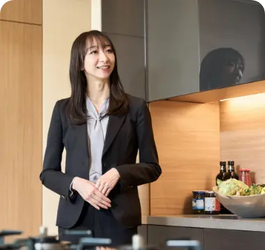 マンション販売営業職は、開発したマンションをお客さまにご提案し、販売する仕事です。まずは、マンションギャラリーに来場されたお客さまへマンションのコンセプトやロケーション、デザイン、設備などの魅力をわかりやすく説明し、価格や間取りのご要望をヒアリングして最適なプランを提案します。契約に向けては、お客さまの年収や条件に合った住宅ローンを選定し、マンション完成までのスケジュールと合わせてご案内。契約後は、お客さまの希望に応じて、設計変更やオプションを追加できる「じぶんメイド・サーパス」の打ち合わせを行い、工事内容を決定します。マンションが完成すれば、内覧会を実施し、お客さまに仕上がりを確認していただいたうえで、お引き渡しとなります。経験を積むと、テレビCMや広告制作といった集客施策に携わったり、マンション開発のコンセプトや設備などを決める企画段階から携わるなど、より大きな役割にチャレンジするようになります。