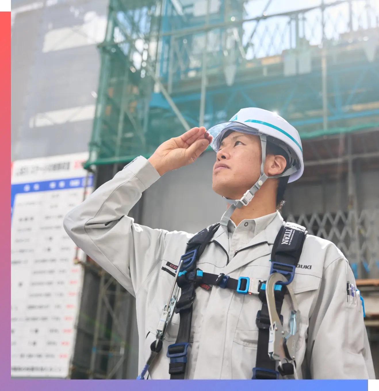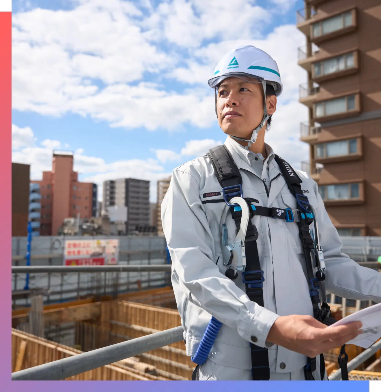 前職は地場の建設会社で、公共施設、商業施設、工場など幅広い建設現場で建築施工管理職を担当していた。現在、大分の物件で初めての作業所長を任されている。
